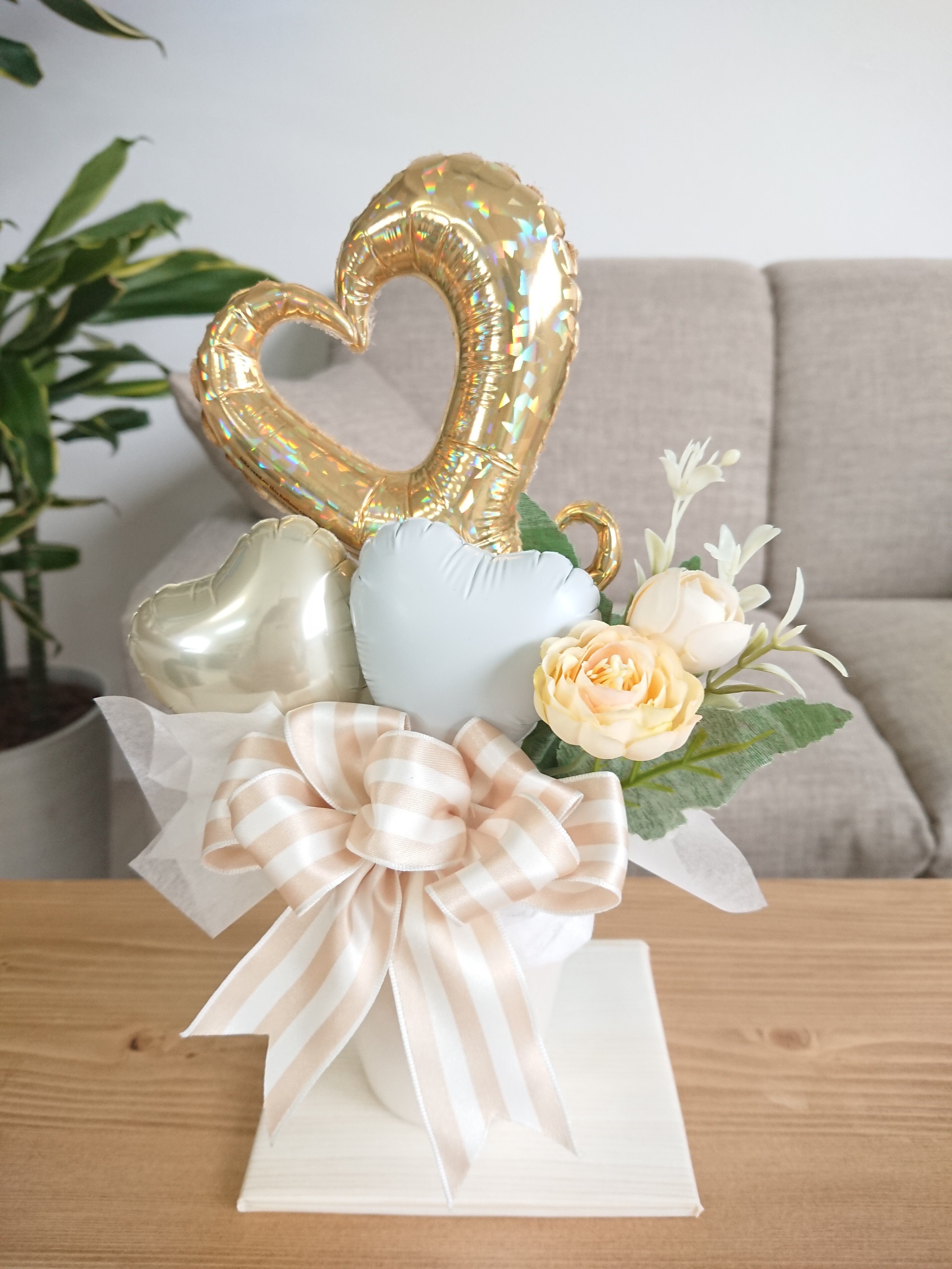 バルーンでできたアレンジメントはとっても長持ちしますので、ご自宅に飾ったり、お店に飾ったり、プレゼントなんかにもとってもおすすめです。